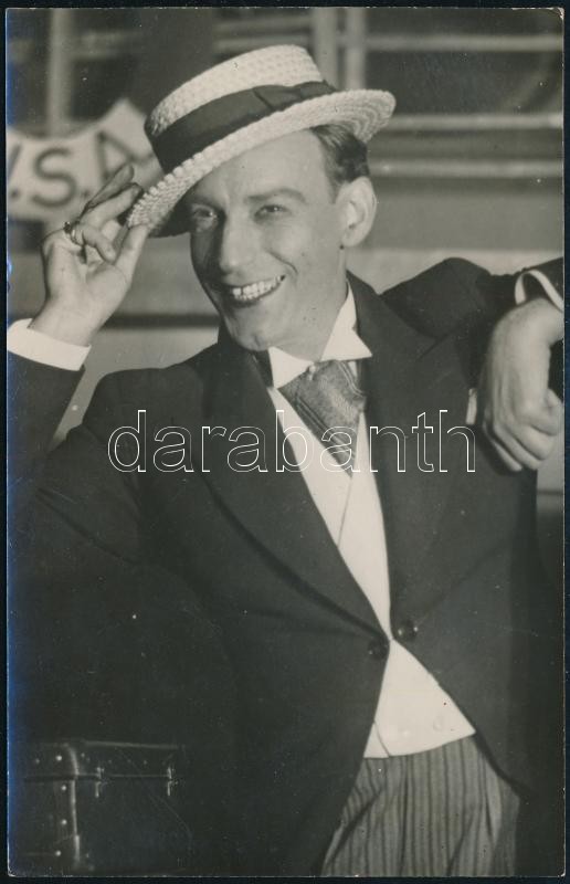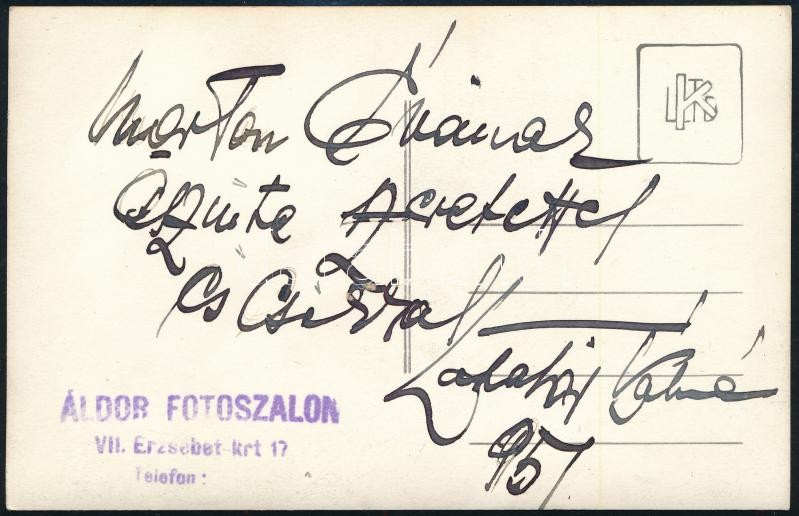1957 Latabár Kálmán (1902-1970) színművész fotója, Áldor fotó pecséttel jelezve, hátoldalon Marton Éva opera-énekesnőnek írt saját kezű soraival és aláírásával