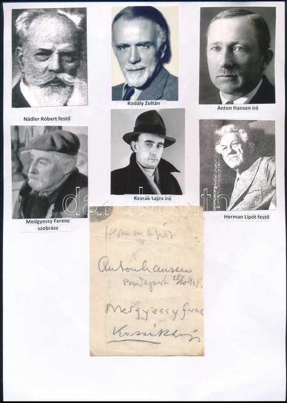 Kodály Zoltán, Nádler Róbert, Medgyessy Ferenc, Bor Pál, Kassák Lajos,... https://www.darabanth.com/de/38-Gross-Auktion/38.1/Kunst-Skulpturen-Historische-Dokumenten/Signatur~15961/Kodaly-Zoltan-Nadler-Robert-Medgyessy-Ferenc-Bor-Pal-Kassak-Lajos-Hermann-Lipot-Anton-H~II2604687