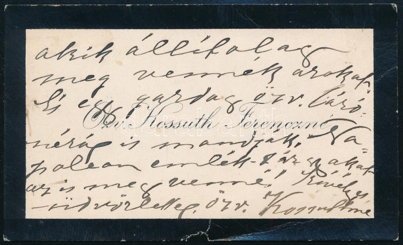 özv. Kossuth Ferencné saját kézzel írt sorai névjegykártyáján https://www.darabanth.com/de/38-Gross-Auktion/38.1/Kunst-Skulpturen-Historische-Dokumenten/Signatur~15961/ozv-Kossuth-Ferencne-sajat-kezzel-irt-sorai-nevjegykartyajan~II2601245