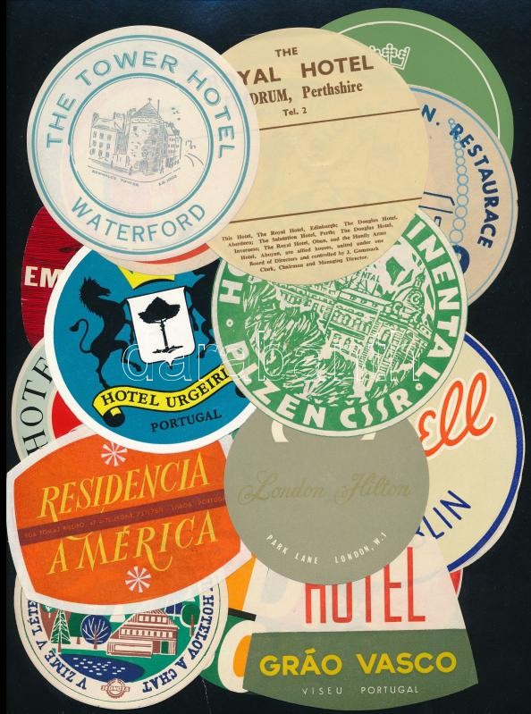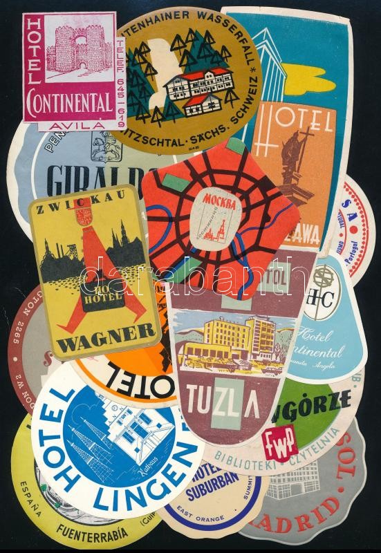 150 db Hotelcímke az 1950-70-es évekből, benne brit, német, spanyol, osztrák, portugál. ír, csehszlovák, orosz stb szállodákkal. / Collection of 150 luggage / hotel labels