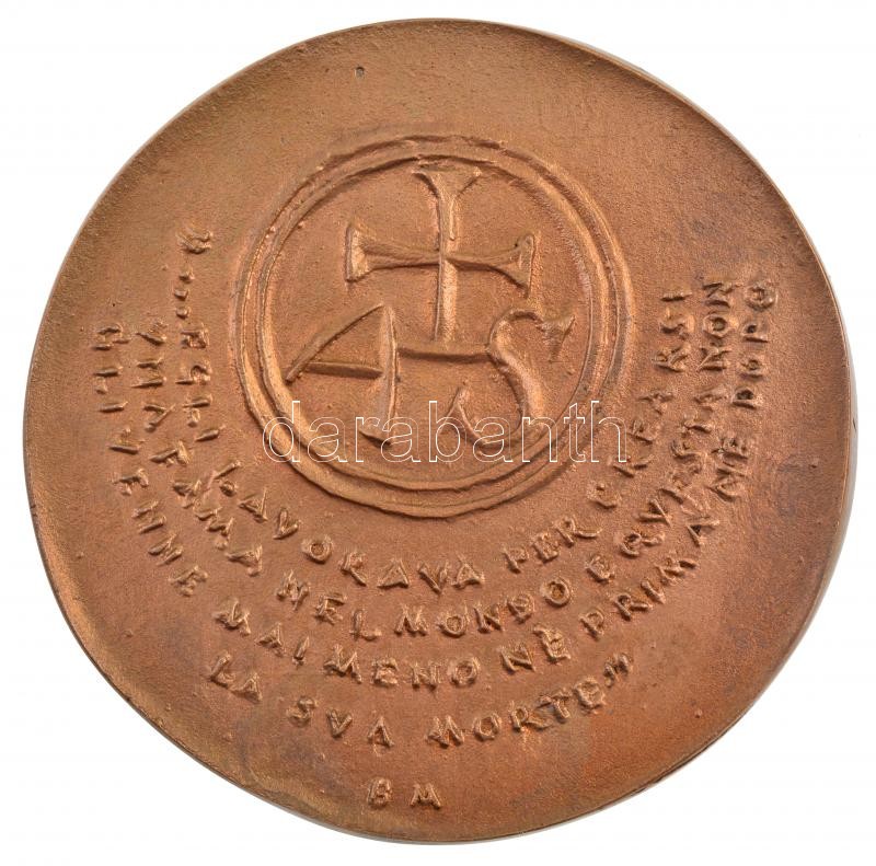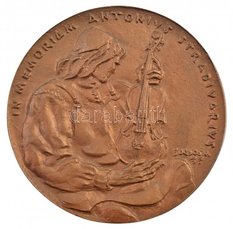 Borsos Miklós (1906-1990) 1957. "IN MEMORIAM ANTONIVS STRADIVARIVS / ...EGLI LAVORAVA PER CRÉARSI Y NA FAMA (...)" kétoldalas, öntött bronz emlékérem (102mm) T:1- / Hungary 1957. "IN MEMORIAM ANTONIVS STRADIVARIVS / ...EGLI LAVORAVA PER CRÉARSI Y NA FAMA (...)" double-sided, cast bronze commemorative medallion (102mm) C:AU