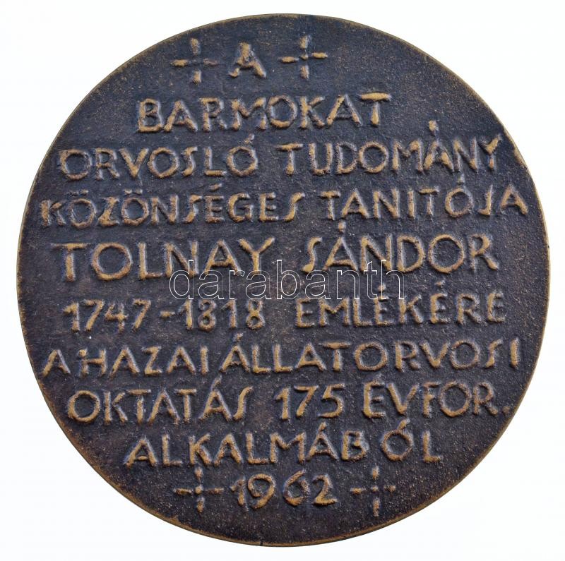 Csúcs Ferenc (1905-1999) 1963. "A barmokat orvosló tudomány közönséges tanítója - Tolnay Sándor 1747-1818 - emlékére a hazai állatorvosi oktatás 175 évfor. alkalmából 1962" kétoldalas Br plakett, peremen jelzett sorszámmal "7" (90mm) T:2 patina /