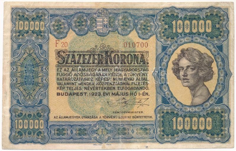 1923. 100.000K "Orell Füssli Zürich", "F20 010700"... https://www.darabanth.com/de/38-Gross-Auktion/38.1/Numismatik/Ungarische-und-Auslandische-Banknoten~15627/1923-100000K-Orell-Fussli-Zurich-F20-010700-sorszammal-TIII-restauralt-Hungary-1923-1~II2611985