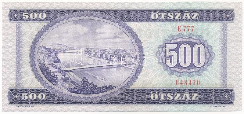 1990. 500Ft "E 777 048370" T:I / Hungary 1990. 500 Forint &q... https://www.darabanth.com/de/38-Gross-Auktion/38.1/Numismatik/Ungarische-und-Auslandische-Banknoten~15627/1990-500Ft-E-777-048370-TI-Hungary-1990-500-Forint-E-777-048370-CUNC-Adamo-F43~II2611579
