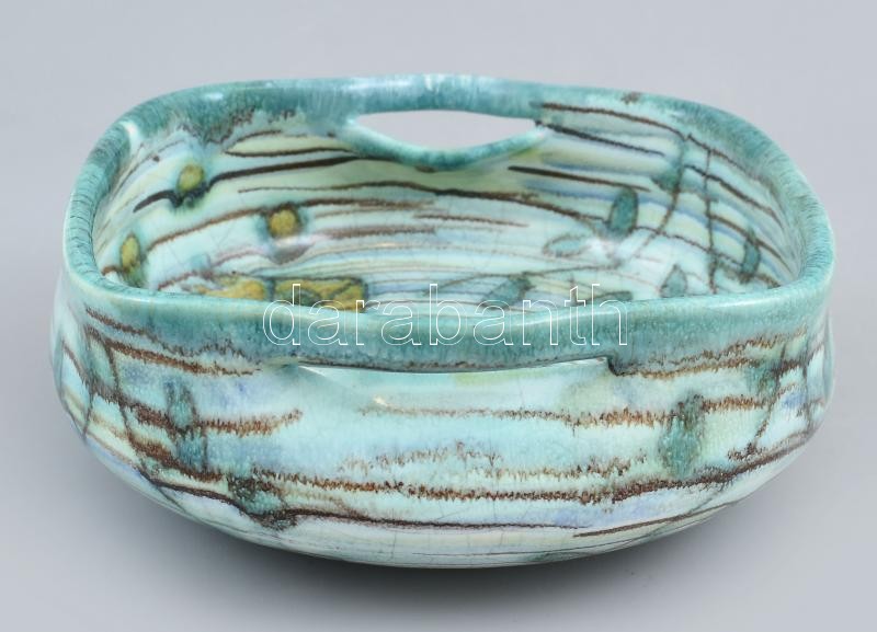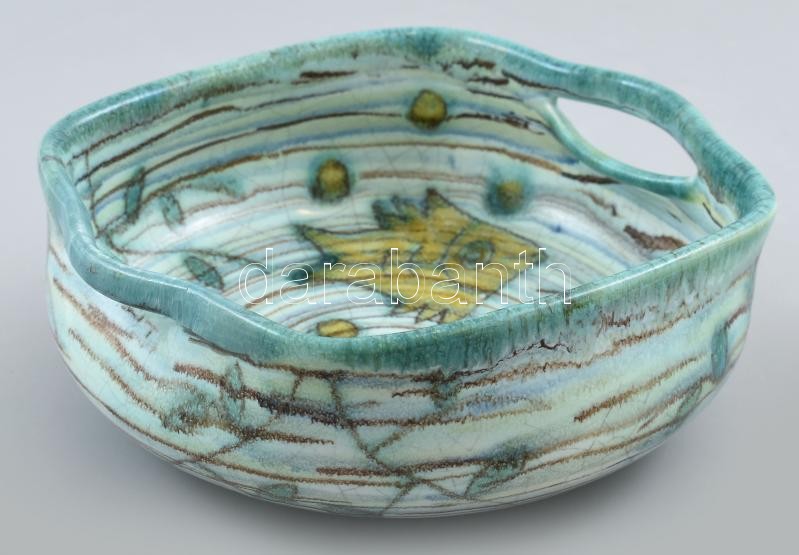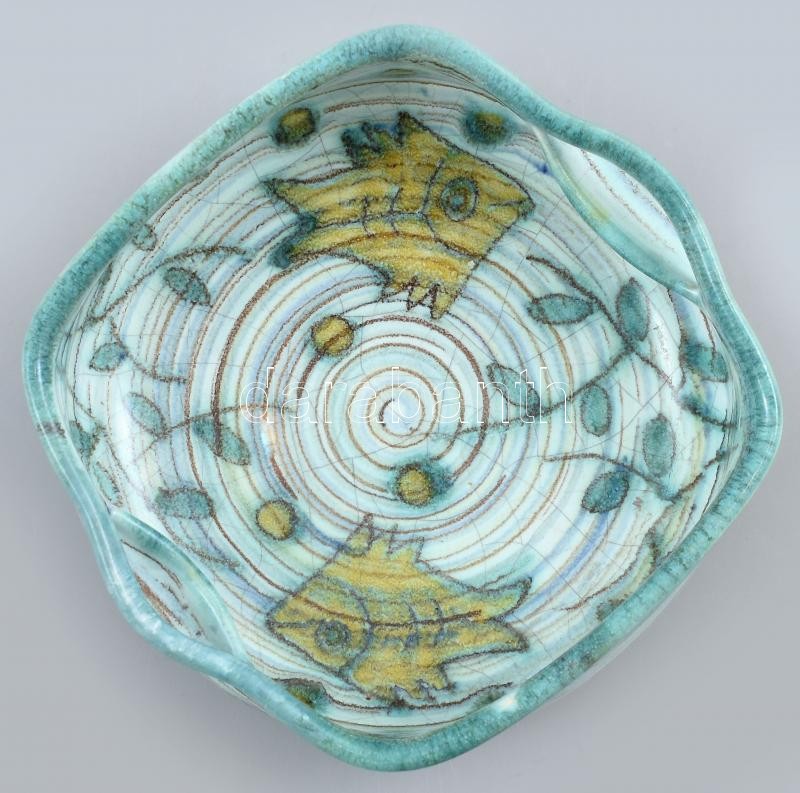 Gorka Géza (1894-1971): Halas kínálótál, Zsolnay korszak, 1946-47 körül. Mázas kerámia, jelzett, egyik fülénél szakszerű restaurálási nyomok, d: 16 cm, m: 6,5 cm