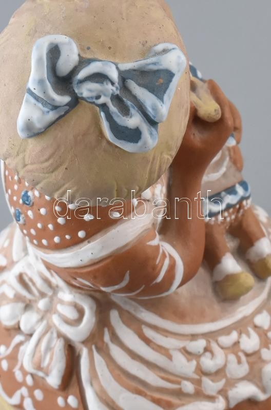 Beschreibung: Kovács Margit (1902-1976): Babáját etető kislány. Színesen festett, engóbozott kerámia. Korának megfelelő állapotban. KM jelzéssel. m: 22 cm
