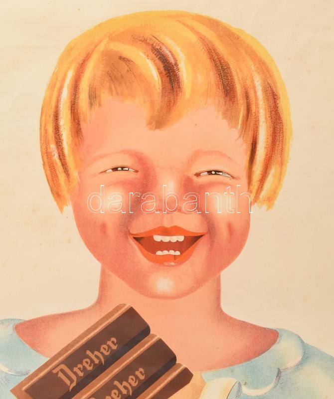 cca 1920-1930 Dreher-Maul csokoládé, színes litografált reklám plakát, Bp., én., Magyar és Kämpfner Litográfia-ny., jelzett a nyomaton (S. Galambos), kis lapszéli gyűrődésekkel, szakadásokkal, 95x63 cm