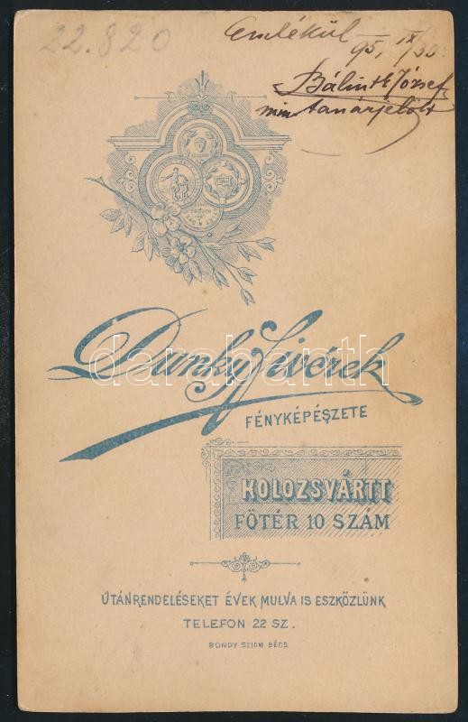 Beschreibung: cca 1895 Pap portréja, keményhátú fotó Dunky fivérek kolozsvári műterméből, 10,5×6,5 cm