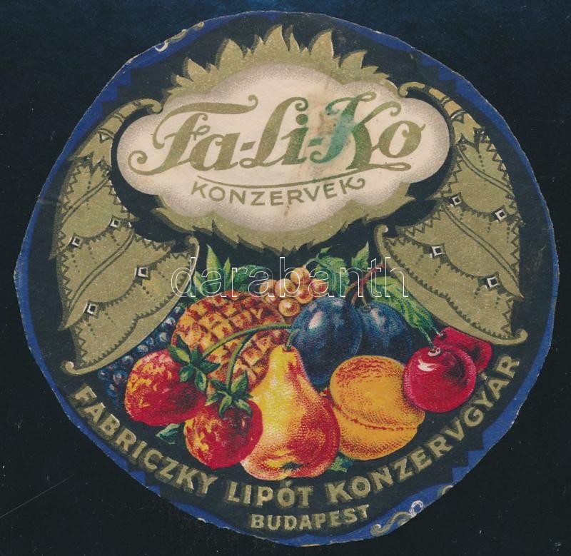 Fa-Li-Ko konzervek, Fabriczky Lipót Konzervgyár címke, vágott https://www.darabanth.com/de/380-Fernauktion/380.0/Kunst-Dokumente-andere-Sammelgebiete/Werbungen~21/Fa-Li-Ko-konzervek-Fabriczky-Lipot-Konzervgyar-cimke-vagott~II2255917