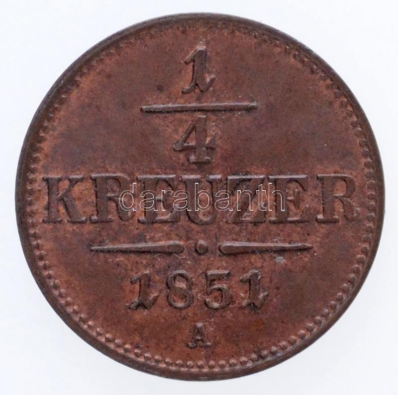 Beschreibung: Ausztria 1851A 1/4kr Cu T:1,1-