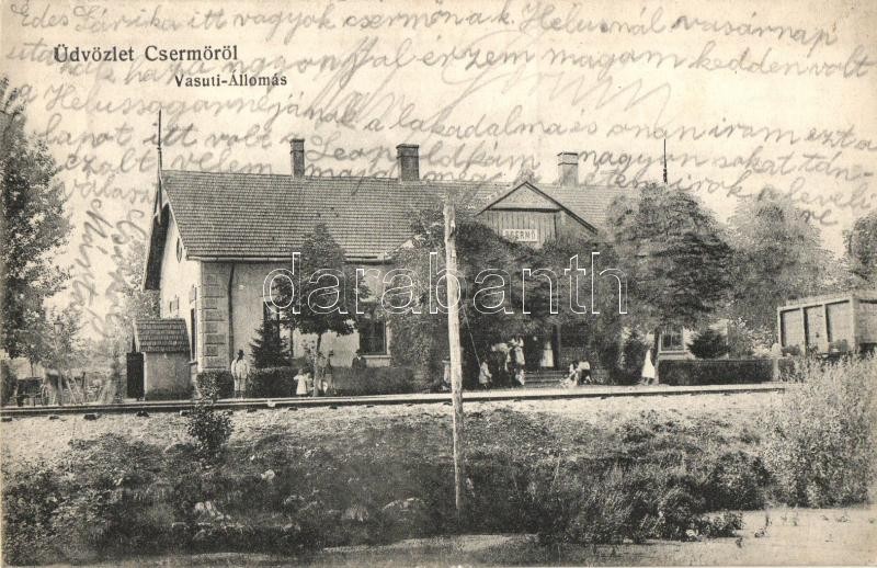 Beschreibung: Csermő, Cermei; Vasútállomás. Gedő Manó felvétele, Holländer S. fia kiadása / railway station