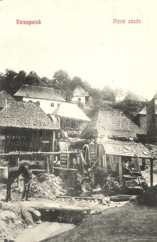 Beschreibung: Verespatak, Rosia Montana; Privát zárda, malom. Kiadja Molnár Árpád / private nunnery, mill (fl)