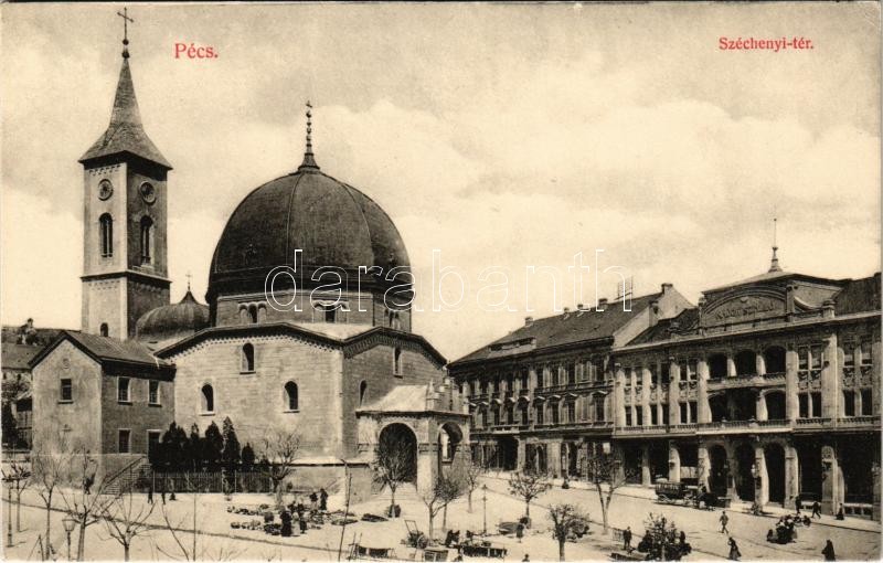 Pécs, Széchenyi tér, piac, Nádor szálló, https://www.darabanth.com/de/381-Fernauktion/381.0/Ansichtskarten/Ungarn~1500004/Pecs-Szechenyi-ter-piac-Nador-szallo-~II2188458