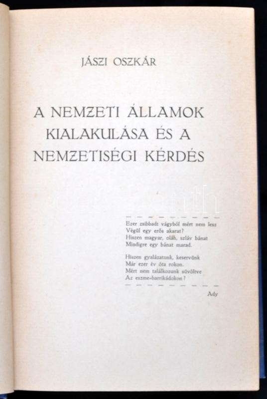 Jászi Oszkár: A nemzeti államok kialakulása és a nemzetiségi kérdés. Társadalomtudományi Könyvtár. Bp.,1912, Grill Károly, XVI+544 p. Első kiadás. Kiadói egészvászon-kötés.