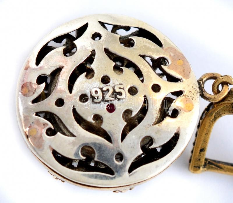 Beschreibung: Aranyozott ezüst(Ag) fülbevalópár, kövekkel gazdagon kirakva, jelzett, h: 3,5 cm, d: 2 cm, bruttó: 17,08 g