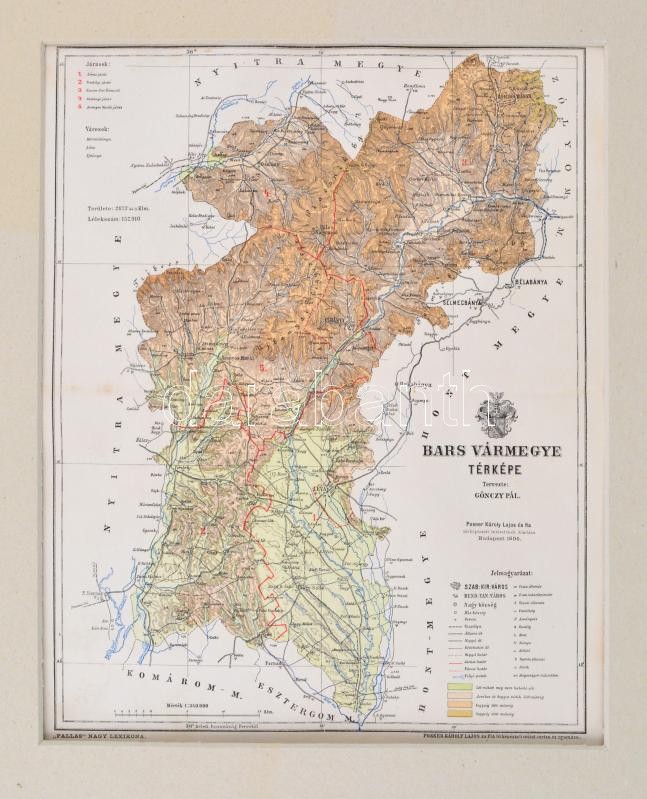 1895 Bars vármegye térképe,1:340.000, tervezte: Gönczy Pál, Pallas Nag... https://www.darabanth.com/de/381-Fernauktion/381.0/Kunst-Dokumente-andere-Sammelgebiete/Landkarten~500034/1895-Bars-varmegye-terkepe-1340000-tervezte-Gonczy-Pal-Pallas-Nagy-Lexikona-Bp-Posner-~II2125113