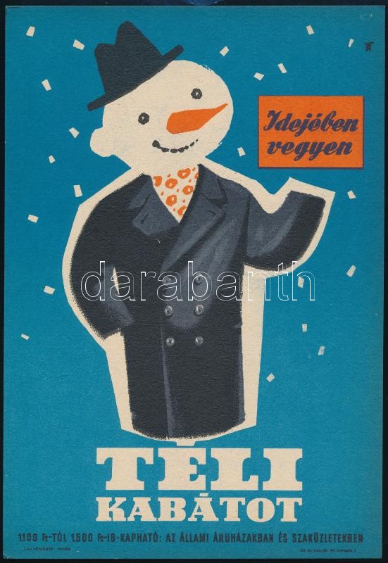 Villamosplakát: Idejében vegyen téli kabátot, 24×16,5 cm https://www.darabanth.com/de/381-Fernauktion/381.0/Kunst-Dokumente-andere-Sammelgebiete/Plakat~500037/Villamosplakat-Idejeben-vegyen-teli-kabatot-24C39716-5-cm~II2266463