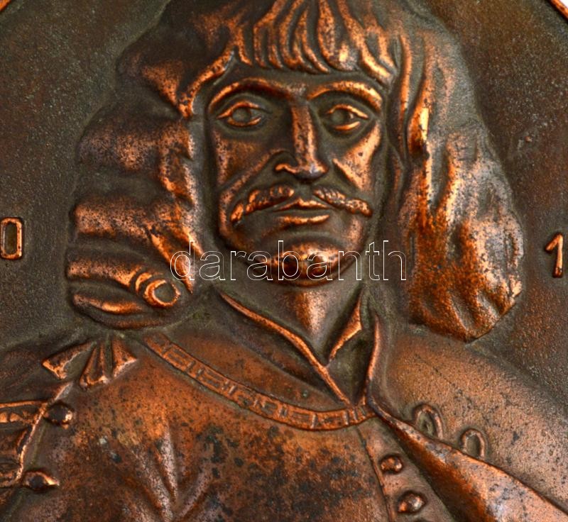 1939. "GRÓF ZRÍNYI MIKLÓS ÉS A MAGYAROK ISTENE SEGÍTSEN MEG MINKET! AMEN! SORS BONA NIHIL ALIUD / Weiss Manfréd hadiüzem alkalmazottai" Br fali plakett (193x152mm), hátoldalán akasztóval