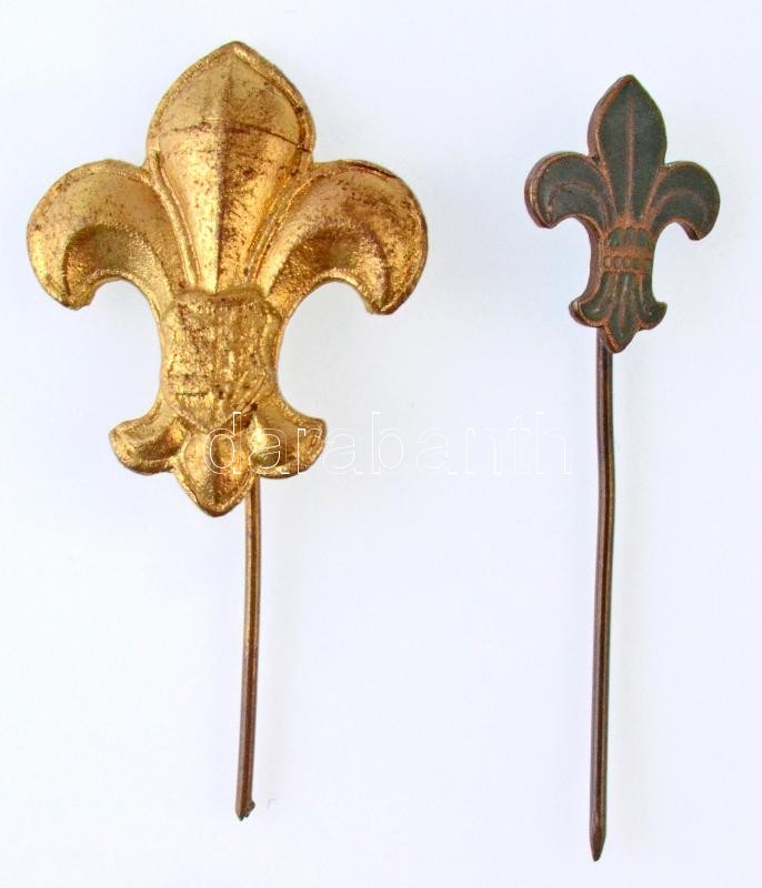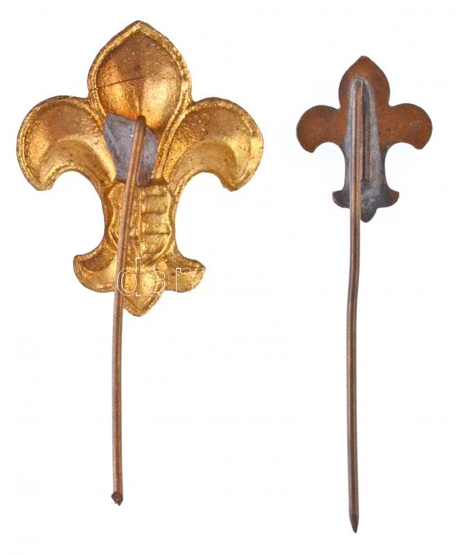 ~1935. "Magyar Királyi Cserkészjelvény" zománcozott jelvény, zöld zománccal (15x12mm) + 1946. "Köztársasági Cserkészjelvény" aranyozott Br jelvény (26x22mm) T:1-2