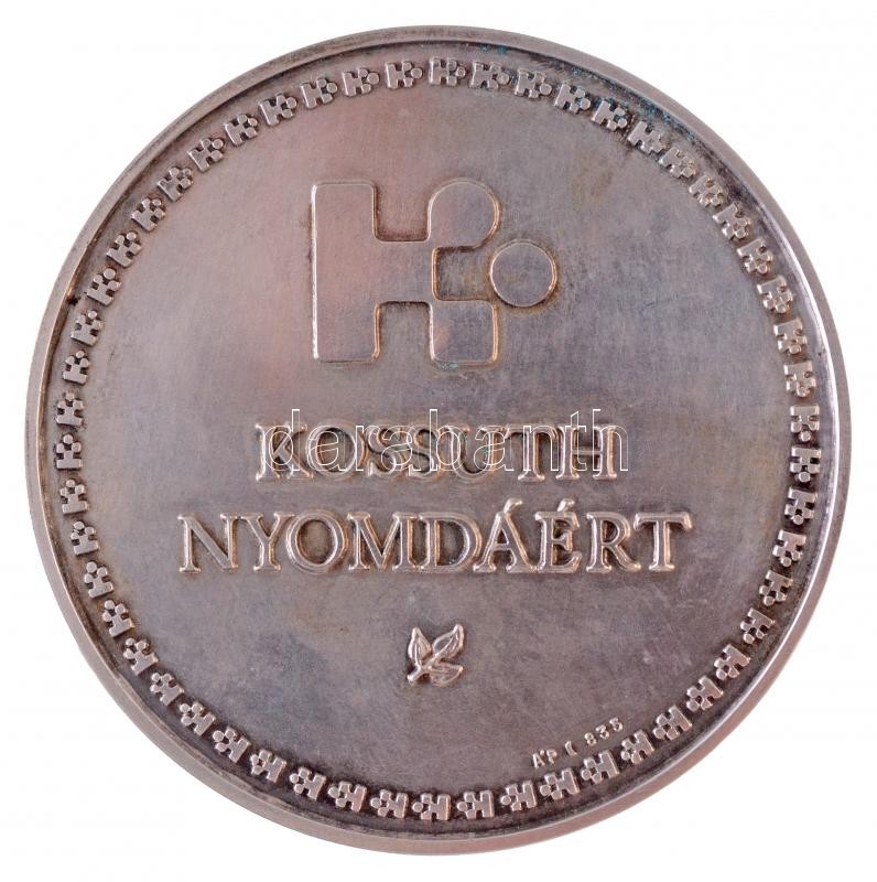 DN "Kossuth Nyomdáért / A vállalat eredményes működése érdekében végzett kiemelkedő munkájáért" jelzett Ag emlékérem (134,21g/0.835/65mm) T:1- kis patina