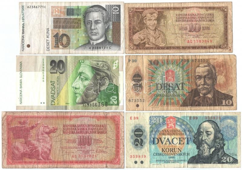 Beschreibung: Vegyes: Jugoszlávia 1968. 10D + 1978. 100D + Horvátország 1995. 10K + Csehszlovákia 1986. 10K + 1988. 20K + Szlovákia 2001. 20K T:III-IV