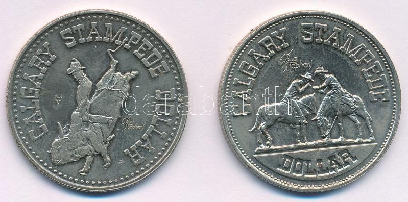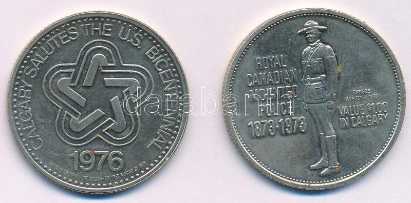 Beschreibung: Kanada 1973. "Calgary Stampede Dollar / Calgary salutes the U.S. Bicentennial" Cu-Ni emlékérem (33mm) + "Calgary Stampede Dollar / Royal Canadaian Mounted Police 1873-1973" Cu-Ni emlékérem (33mm) T:2