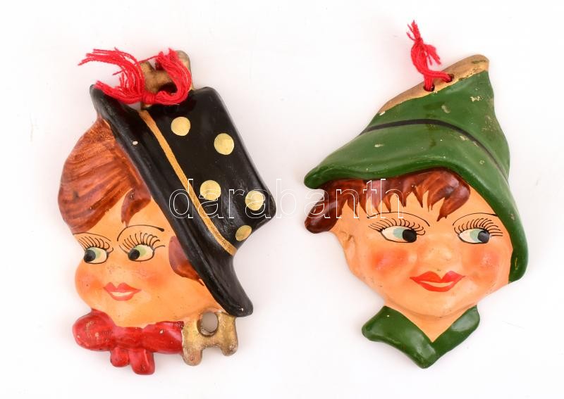 Beschreibung: 2 db kerámia maszk, kopásnyomokkal, 15×11 cm