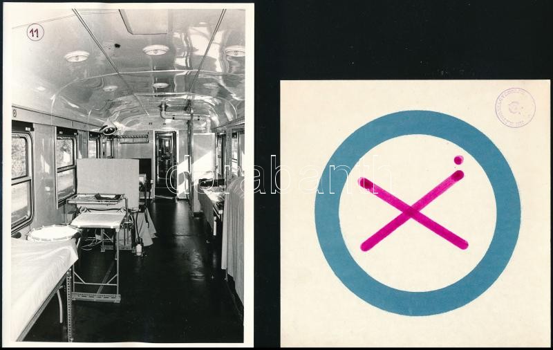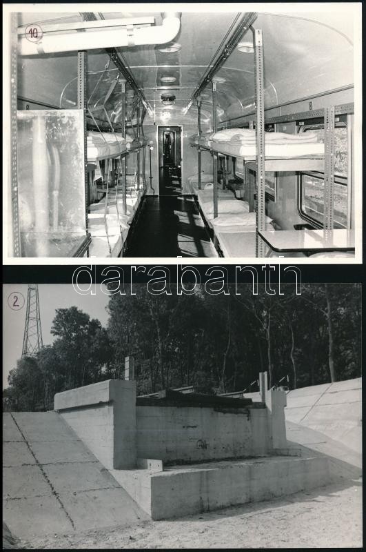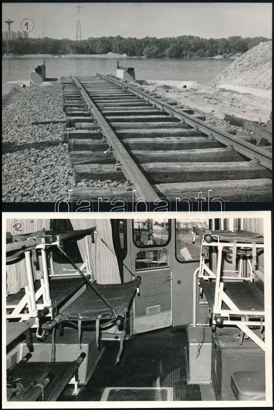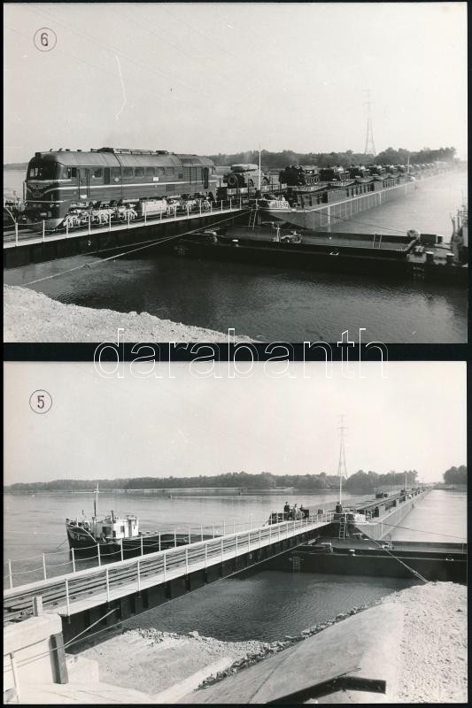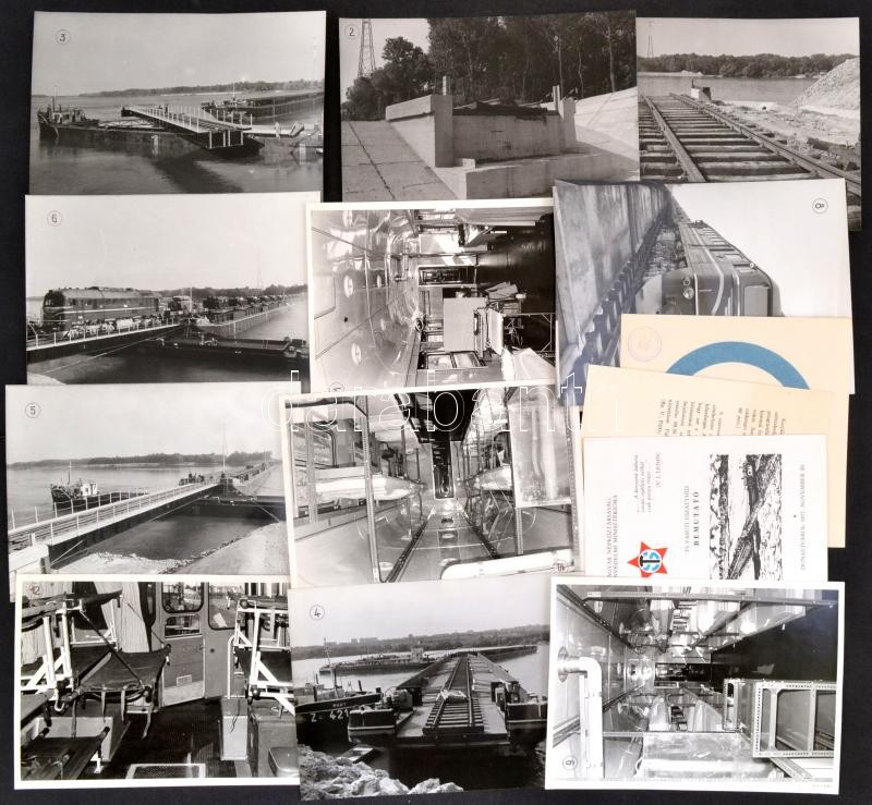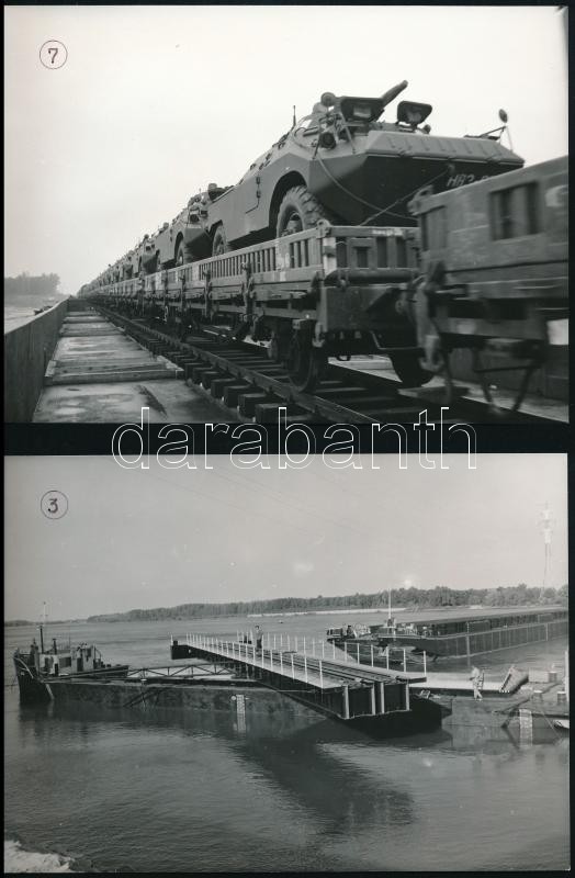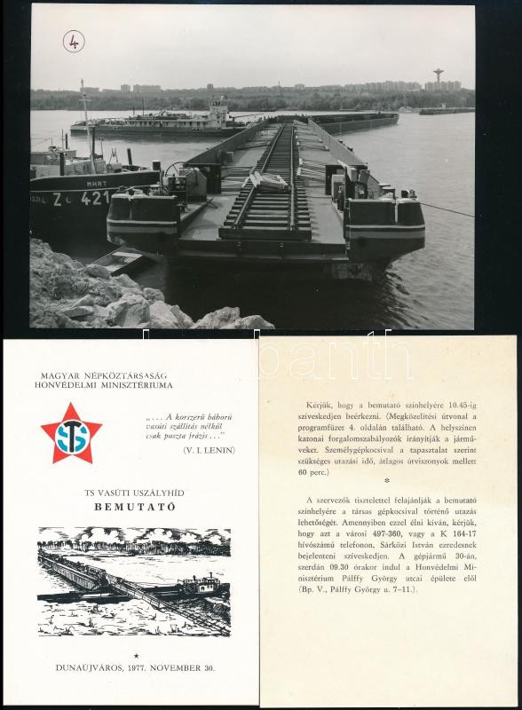 Magyar Néphadsereg hídavatási meghívója, mellékelt fényképekkel, rajzzal kiegészítve (katonavonat, sebesültszállító Ikarus, feljáróhíd forgatása, stb.), 12 db, 13×18 cm + térkép Magyarország állandó jellegű Duna és Tisza hídjairól