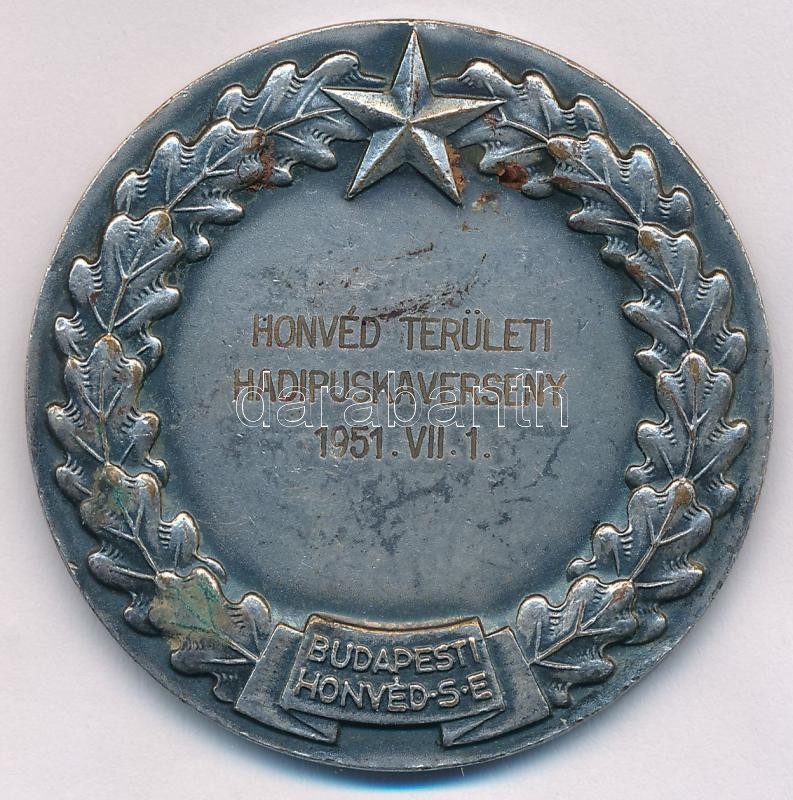Beschreibung: 1951. "Budapesti Honvéd SE" ezüstözött Br sport emlékérem, hátoldalon gravírozva "HONVÉD TERÜLETI HADIPUSKA VERSENY 1951. VII. 1." (50mm) T:2