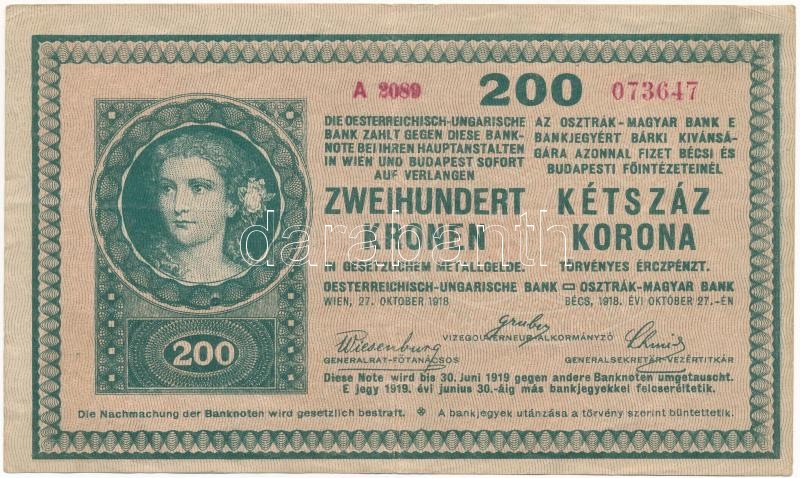 1918. 200K "A 2089" hullámos hátlappal T:III Adamo K31/6 https://www.darabanth.com/de/382-Fernauktion/382.0/Numismatik/Ungarische-Banknoten~1500007/1918-200K-A-2089-hullamos-hatlappal-TIII-Adamo-K316~II2268594