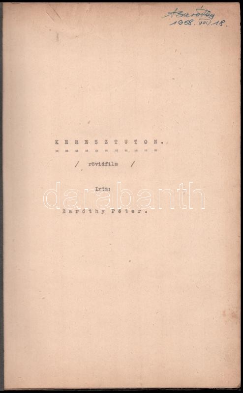1958 Baróthy Péter: Keresztúton című rövidfilmjének forgatókönyve + el... https://www.darabanth.com/de/383-Fernauktion/383.0/Kunst-Dokumente-andere-Sammelgebiete/Dokument~500017/1958-Barothy-Peter-Keresztuton-cimu-rovidfilmjenek-forgatokonyve-plus-elutasito-levelek~II2279963
