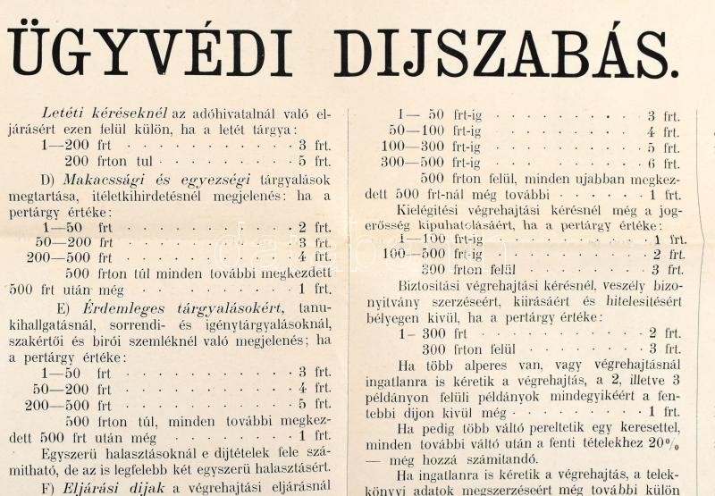 Beschreibung: 1897 Pécs, ügyvédi díjszabási táblázat, hajtott