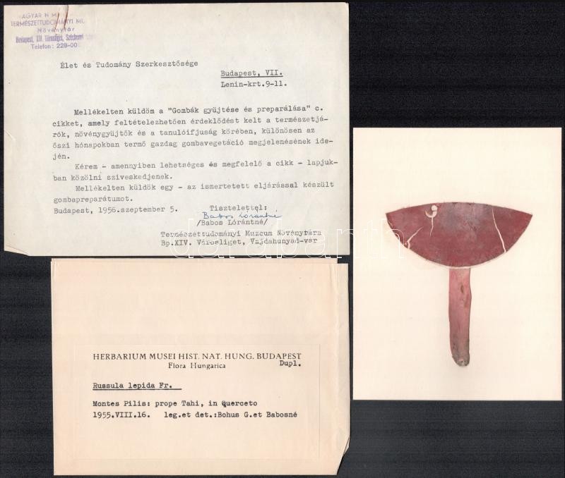 Beschreibung: cca 1950 Gombászati tétel, közte levél, cikk, fotók