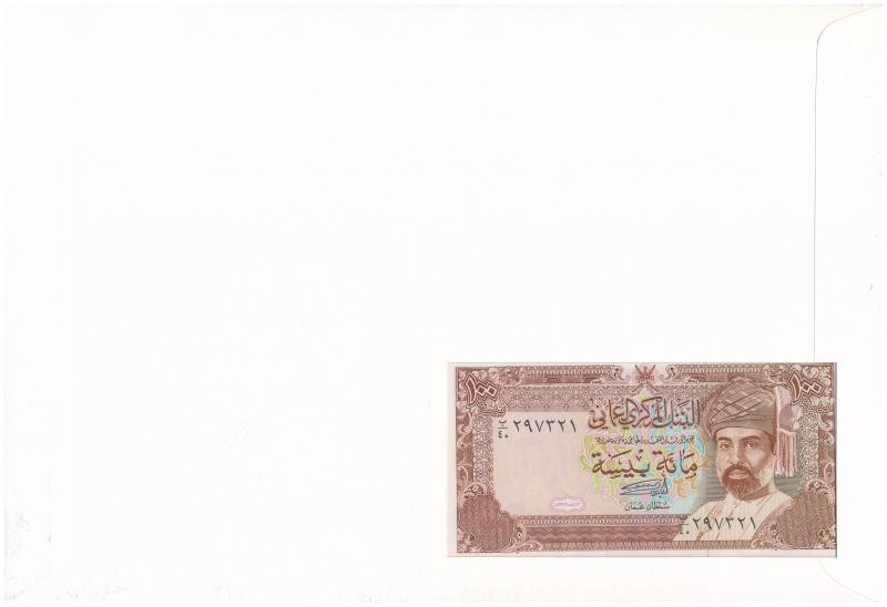 Omán 1992. 100B, felbélyegzett borítékban, bélyegzéssel T:I Oman 1992.... https://www.darabanth.com/de/384-Fernauktion/384.0/Numismatik/Umschlage-mit-Munzen-und-Banknoten~1500004/Oman-1992-100B-felbelyegzett-boritekban-belyegzessel-TI-Oman-1992-100-Baisa-in-envelope-w~II2268340