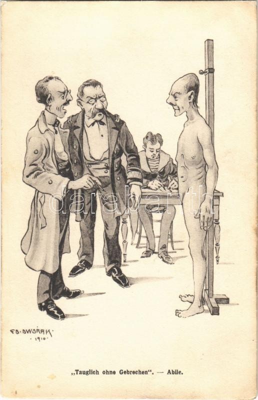 Abile / Tauglich ohne Gebrechen. K.u.K. Kriegsmarine Matrose / Austro-Hungarian Navy mariner humour art postcard. G. Fano 2101. Pola 1910-11. s: Ed. Dworak