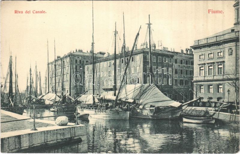 Fiume, Rijeka; Riva del Canale / port, ships https://www.darabanth.com/de/385-Fernauktion/385.0/Ansichtskarten/Kroatien~500009/Fiume-Rijeka-Riva-del-Canale-port-ships~II2301253