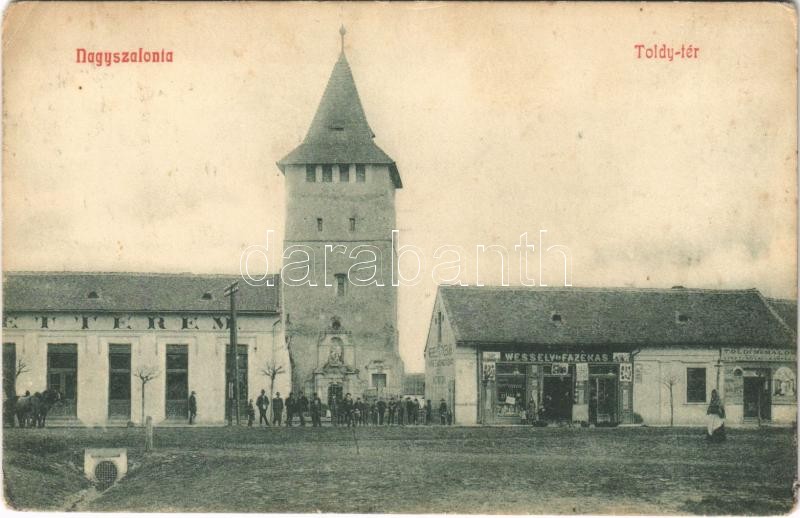 1909 Nagyszalonta, Salonta; Toldy tér, torony, Wessely és Fazekas és T... https://www.darabanth.com/de/385-Fernauktion/385.0/Ansichtskarten/Siebenburgen~500006/1909-Nagyszalonta-Salonta-Toldy-ter-torony-Wessely-es-Fazekas-es-Toldi-mumalom-uzlete-ett~II2306472