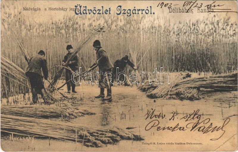 1903 Hortobágy, nádvágás a Hortobágy jegén, magyar folklór. Délibábok ... https://www.darabanth.com/de/385-Fernauktion/385.0/Ansichtskarten/Ungarn~500005/1903-Hortobagy-nadvagas-a-Hortobagy-jegen-magyar-folklor-Delibabok-hazaja-Telegdi-K-L~II2300549