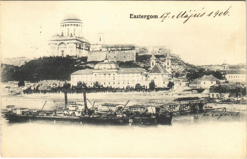 1906 Esztergom, Bazilika, DDSG vontatóhajók, hajóállomás https://www.darabanth.com/de/385-Fernauktion/385.0/Ansichtskarten/Ungarn~500005/1906-Esztergom-Bazilika-DDSG-vontatohajok-hajoallomas~II2303854