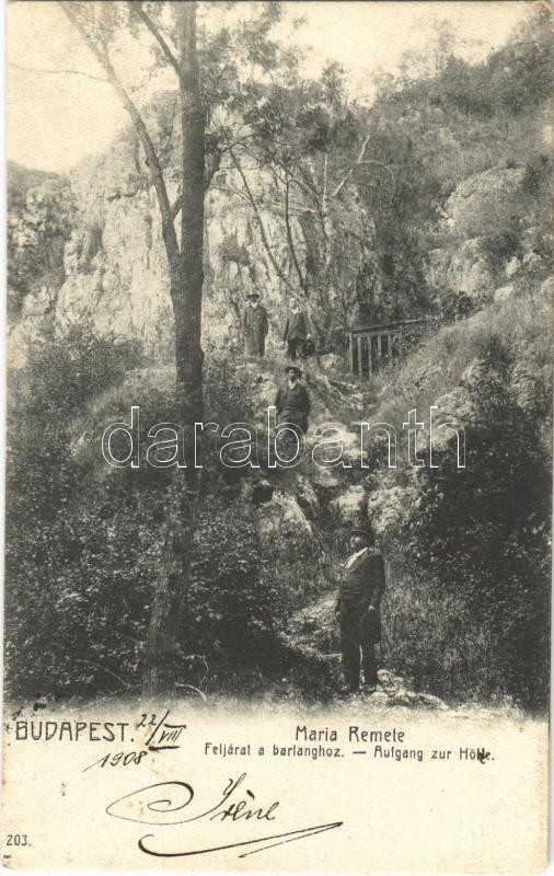 1908 Budapest II. Máriaremete, feljárat a barlanghoz (EK) https://www.darabanth.com/de/385-Fernauktion/385.0/Ansichtskarten/Ungarn~500005/1908-Budapest-II-Mariaremete-feljarat-a-barlanghoz-EK~II2302950