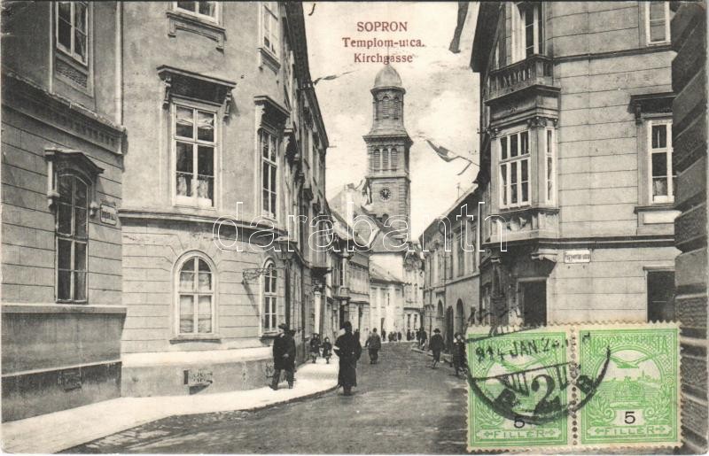 Beschreibung: 1914 Sopron, Templom utca, Fegyvertár utca, magyar zászlók. Breuer D. kiadása. TCV card (EK)