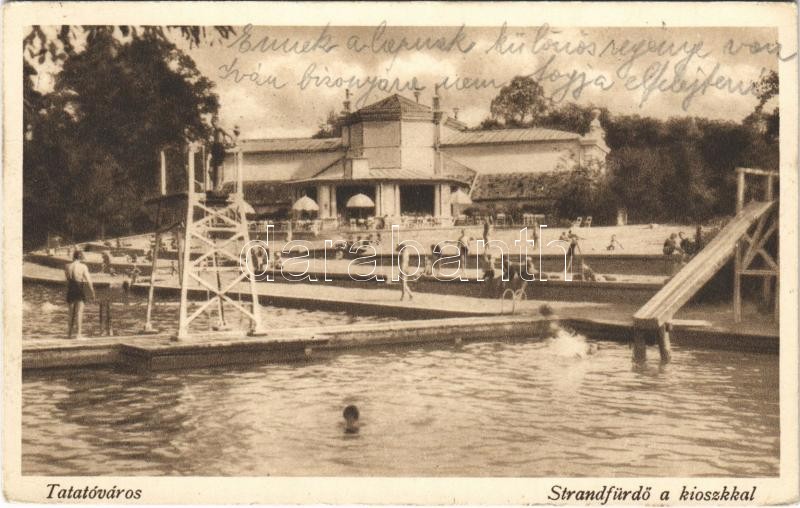1934 Tata, Tata-Tóváros; Strandfürdő a kioszkkal, fürdőzők, csúszda (E... https://www.darabanth.com/de/385-Fernauktion/385.0/Ansichtskarten/Ungarn~500005/1934-Tata-Tata-Tovaros-Strandfurdo-a-kioszkkal-furdozok-csuszda-EK~II2306209