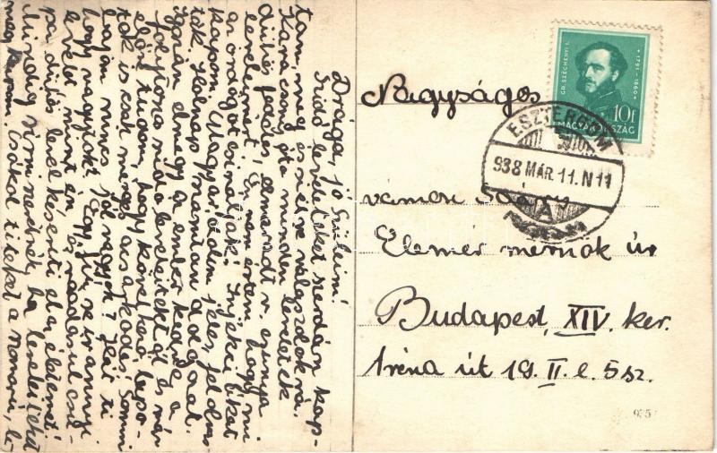 Beschreibung: 1938 Esztergom, Szent Ferenc-rendi Szent Antal Kollégium és Gimnázium (részben felépítve 1938), automobil, montázs