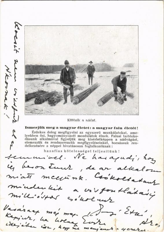 1939 Balatonkenese, Kötözik a nádat, Balaton télen. "Ismerjük meg a magyar életet: a magyar falu életét!" hazafias propaganda. Kiadja Dr. Dömötör Sándor (szakadás / tear)