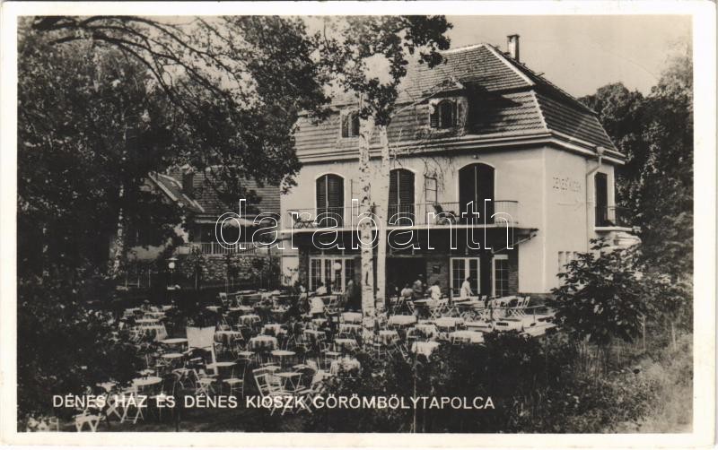 Beschreibung: 1940 Miskolctapolca, Görömbölytapolca, Görömbölyi-Tapolca, Tapolca (Miskolc); Dénes ház és Dénes kioszk, étterem, kerthelyiség. Héjjas és Markovits felvétele