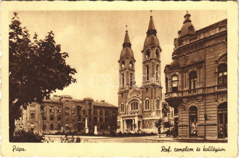 1950 Pápa, Református templom és kollégium (EK) https://www.darabanth.com/de/385-Fernauktion/385.0/Ansichtskarten/Ungarn~500005/1950-Papa-Reformatus-templom-es-kollegium-EK~II2306202