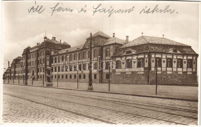Beschreibung: Budapest IV. Újpest, Magyar Kir. Állami Fa- és Fémipari Szakiskola (vágott / cut)