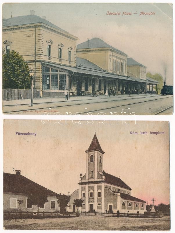 Füzesabony, római katolikus templom, vasútállomás - 2 db régi képeslap... https://www.darabanth.com/de/385-Fernauktion/385.0/Ansichtskarten/Ungarn~500005/Fuzesabony-romai-katolikus-templom-vasutallomas-2-db-regi-kepeslap-2-pre-1945-postcards~II2303422