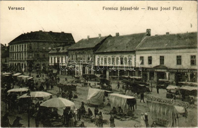 Versec, Werschetz, Vrsac; Ferenc József tér, piac, Herig György, Micha... https://www.darabanth.com/de/385-Fernauktion/385.0/Ansichtskarten/Vojvodina~500010/Versec-Werschetz-Vrsac-Ferenc-Jozsef-ter-piac-Herig-Gyorgy-Michael-Bosnyacsk-uzlete-mark~II2305974