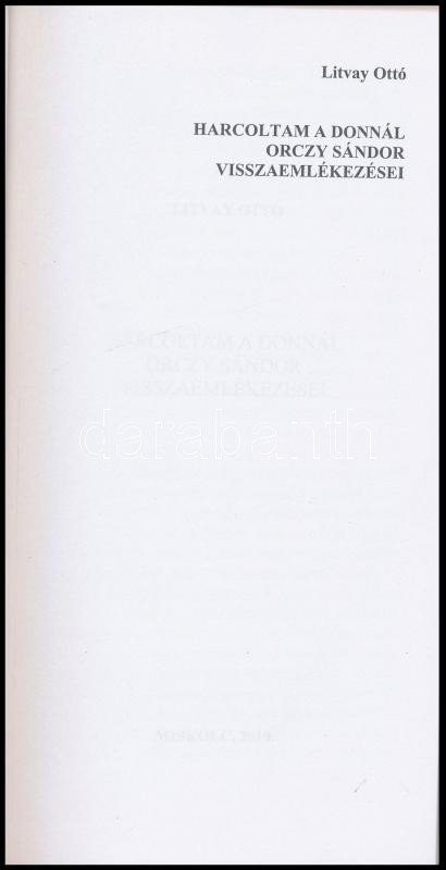 Litvay Ottó: Harcoltam a Donnál Orczy Sándor visszaemlékezései.Miskolc, 2010, Borsod-Abaúj-Zemplén Megyei Levéltárért Alapítvány. Kiadói papírkötés, jó állapotban.